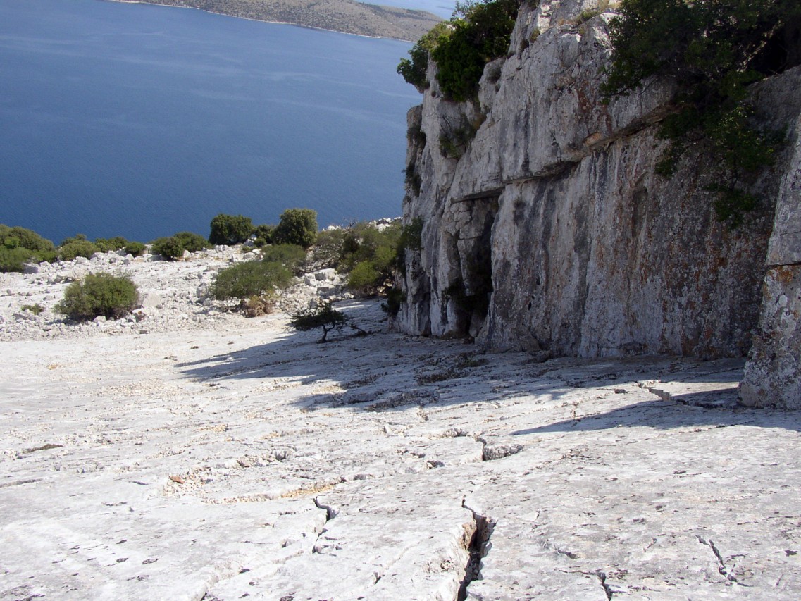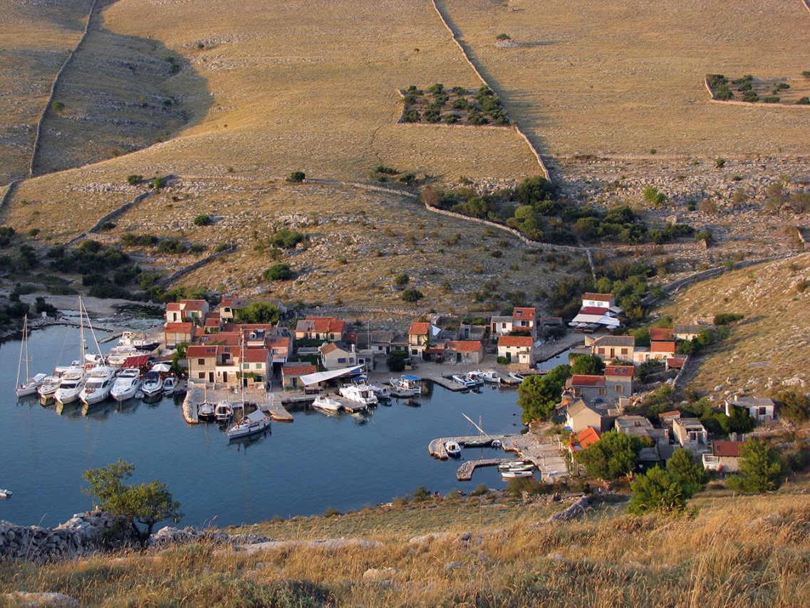 Another artefact in the Kornat karst attracts equal attention as the dry walls: isolated enclousers - olive groves surrounded with the dry walls. We find them in more than a hundred places in the archipelago, at "most unexpected" locations at that. On the steep sides of Škuj and Smokica, on the saddles of Smokvena and Gustac, on the gentle slopes of Njivica, Piškera, Žakan, Lavsa, Suha Punta, Statival, Pinezel, and Grba, on the level plateaus from Knježak to Šipnate.