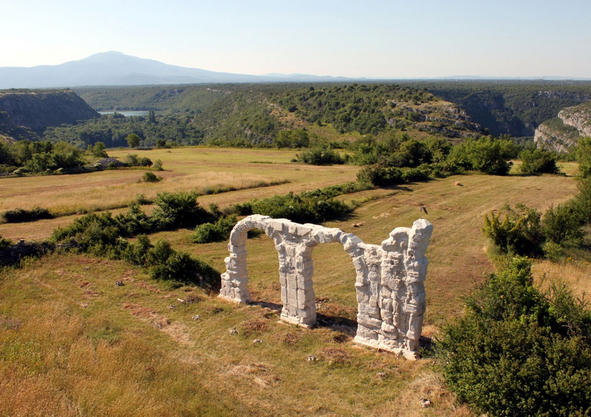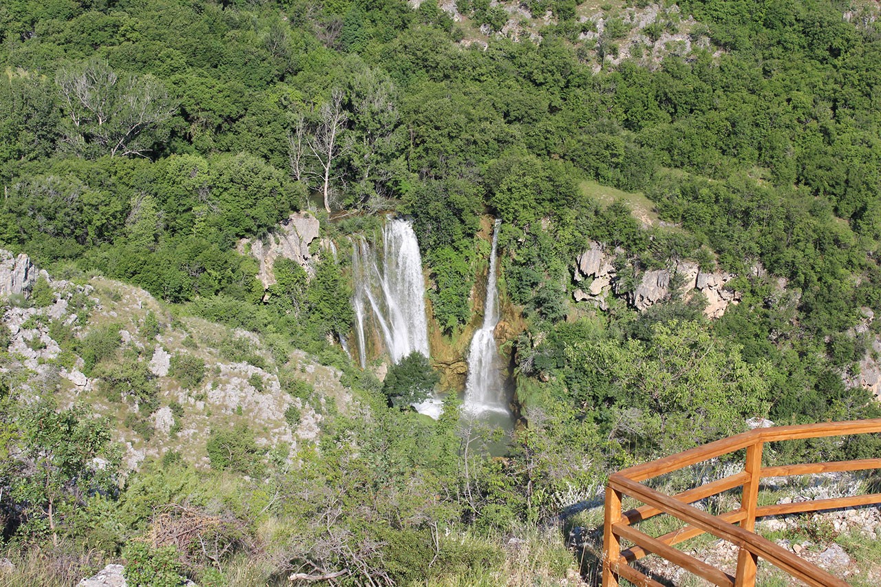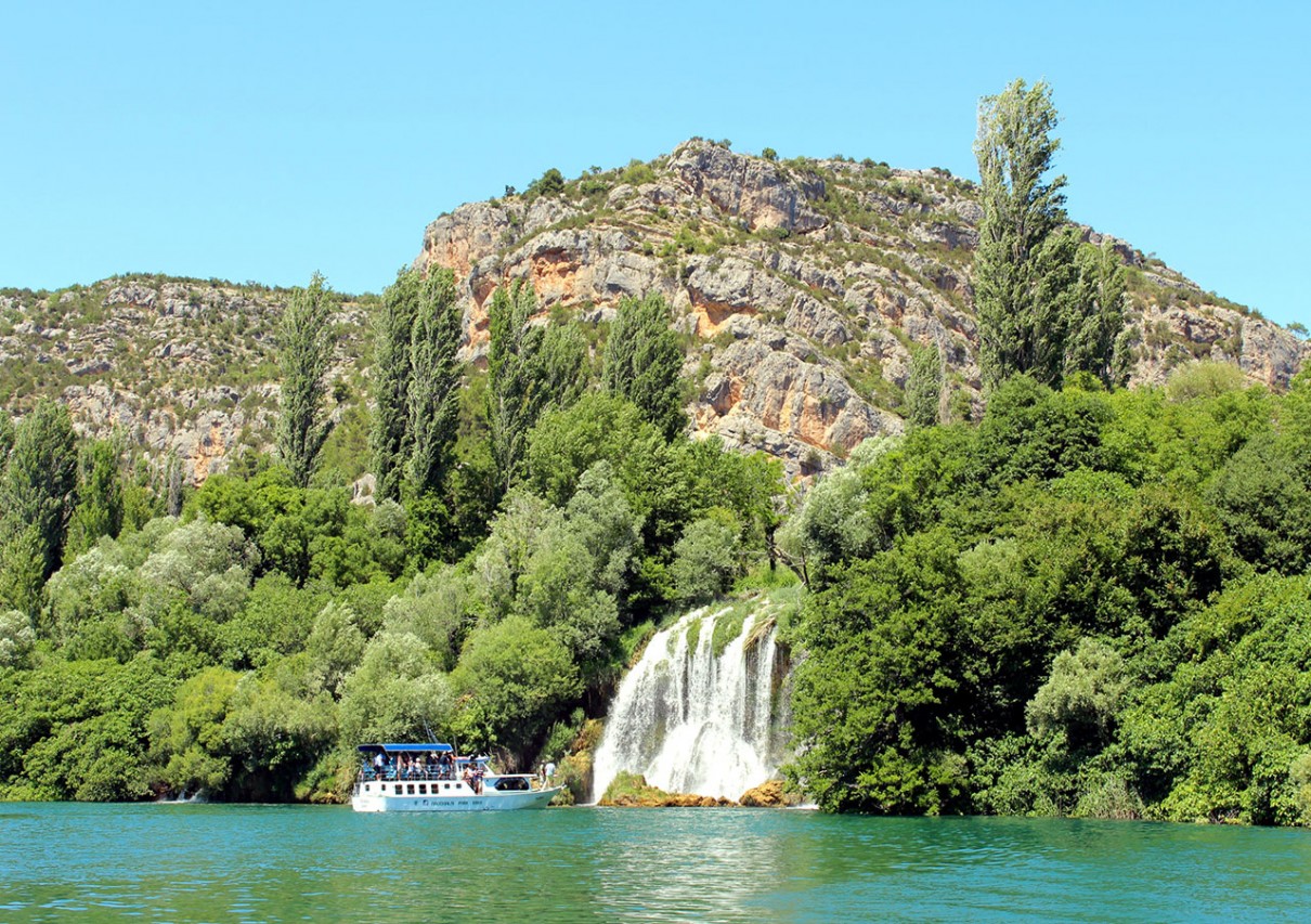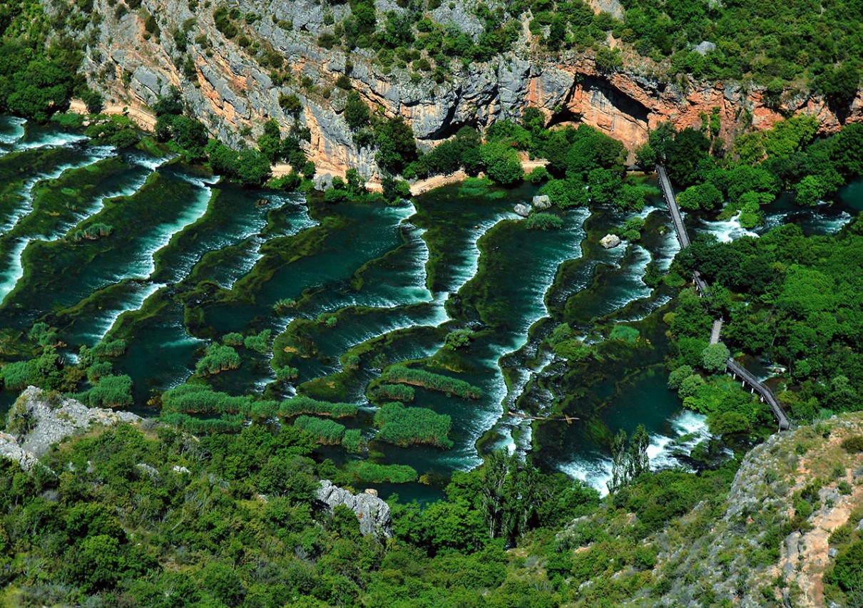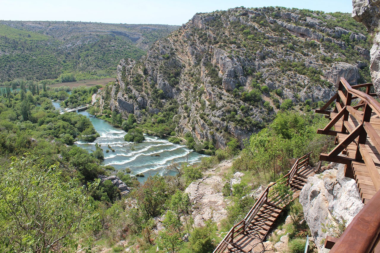 Including the submerged part of the river at the mouth, the Krka River is 72.5 km long, making it the 22nd longest river in Croatia. It springs in the foothills of the Dinara mountain range, 2.5 km northeast of Knin. With its seven waterfalls and a total drop in altitude of 242 m, the Krka is a natural and karst phenomenon. The travertine waterfalls of the Krka River are the fundamental phenomenon of this river.